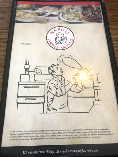 Ever since I was 5 I have been going to Napoli. After serving in the Army it was my first Meal when I came home after 10 years of service. I now take my kids here. The staff is so good that as soon as we walk in they already know what my kids are ordering for food and drinks. Great food and even greater people a absolutely amazing family to be associated with. With a absolutely terrible town like Vallejo its great to have good business owners like the Napoli family.