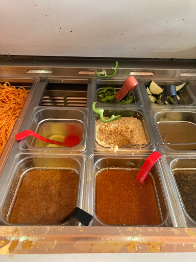 Been there one time and Im hooked. Their lunch special is 5.99 and you get to make your own bowl with your choice of pork, beef, chicken and/or lamb and add a variety of vegetables, spices and sauces, topped with noodles and then they grill it for you. Fills you up very well. The staff was nice too and helpful and attentive on making sure the bar has food. They have burgers too which Im looking foward to trying..
