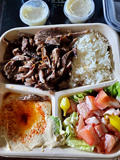 Awesome and fast mediteranean food, was perfect to pop into while staying at the Hampton Inn next door. I was very surprised by how delicious the chicken wrap was (the roasted chicken they use is incredible), and I look forward to the lule kabob for dinner later.