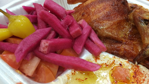 this is the best deal in town. the whole or half chicken is succulent and crisp. its always perfect. good hummus and tahini. a few dollars can feed a whole family and everyone will enjoy it.