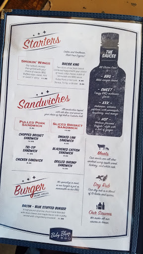 I had such high hopes for this place. A co-worker had been raving about Baby Blues for months before I finally went. So disappointing. I ordered a half-rack of "Memphis-Style Ribs". Memphis style is a dry smoked BBQ, but Baby Blues really emphasizes the DRY. First off, this was the smallest half-rack I had ever seen (possibly taken from a pigmy pig) and then it was so dry, it was like chewy pork jerky. In retrospect, I should have sent it back and ordered something else because Im pretty sure they served me reheated BBQ from the day before. If you want good BBQ, go to Phillips. Dont bother with Baby Blues.