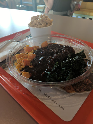 I love the cafeteria concept and the free samples. Staff is friendly and price is okay for the food youre getting. Stopped in for a lemonade, Mac and cheese and a macaroon. Lemonade was please, I think I mixed two and have the blueberry guava one. In the end it was too sweet and started drying out my throat/ still overall I liked it and would give a 2.5-3 out of 5. The Mac and cheese was tasteless and the consistency was too mushy for my liking. The macaron was okay. The filling was not solid enough so it didnt hold the cookies and I think the cookies were slightly too thick. But I do enjoy the size of the macaron. Overall, sweet little spot to spot and get a drink and a little bit. Nothing mind blowing