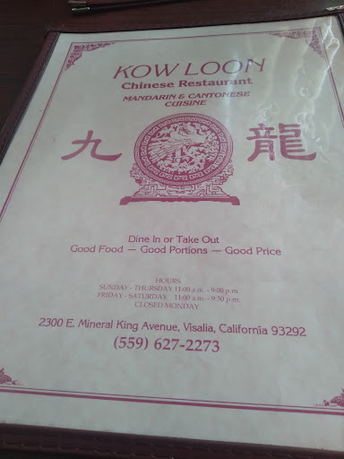 Ive eaten at Kowloon about 20 times and their food is delicious overall (not all their dishes are 5 star, but enough are) - fresh vegetables, perfectly reduced sauces, super fast service and competitive prices. The restaurant is basically an old shack of a house and not particularly clean, so I considered taking off a star...but the food is sooo good. Best in Visalia, by far - one of two even acceptable Chinese restaurants outside of Fresno.