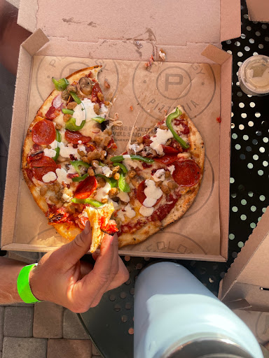Outdoor seating gives this location a leg up on other Pieology locations.