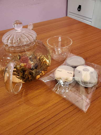 Literally drove through a 5.1 earthquake to get here haha It was unexpected, of course, but they were still nice enough to stay open past their closing time for us! YAY :) Im glad I was able to make it in for their Grand Opening weekend because there were discounted prices. LOCATION/DECOR: -It is located in the plaza next to Waba Grill. -The decor is very cute and girly. It is also a lot roomier than I thought because there was a back room. SERVICE: -All the workers here are SUPER SWEET! Love the great customer service here. MACARONS: -Cookie Butter: My favorite of the 6 that I tried. Not too sweet and captured the cookie butter flavor perfectly. -Thai Tea: My second favorite. A little sweet, but still good! -Black sesame: Black sesame flavor was subtle, but I still liked this one too. -Samoa: Didnt really remind me of a Samoa... -Nutella: It was okay, expected it to be better -Blueberry cheesecake: This was my least favorite.. way TOO sweet EGG PUFF WAFFLES: -Red Velvet: I liked it, but only with the buttercream frosting that it came with. -Black Sesame: Hmm, I didnt really taste the black sesame in this. I seriously thought I ordered the orginial :[ DRINKS: -Tried a mix of two of their teas..I think it was oolong and green tea? and then it was sweetened by strawberry fruit puree! How lovely :) I am not sure if this mix was on the menu, but it was a suggestion from one of the workers and I liked the combo! Will be back to try their cupcakes and egg puff waffles. I think theres a green tea one and a churro one as well! :O