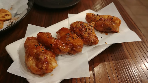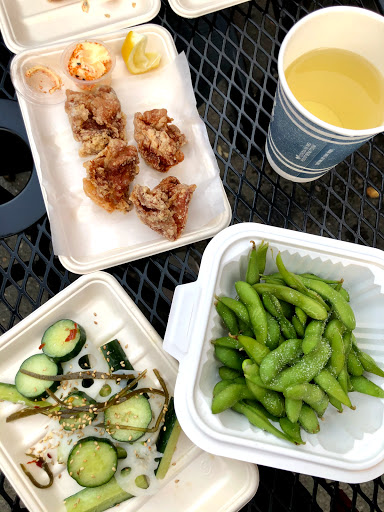 Small ramen joint with no more than seven tables in total. Waiting area is limited to two chairs inside or standing room outside. Make sure to sign wait list before anything else. Counter top seating sits about five with single table outside. Kitchen area is loud and busy, but manageable. Service is brisk and timely with different servers assisting each other. Karrage was delicious came piping hot that I nearly burn my tongue. Tonkotsu ramen is flavorful as broth was a little salty, but edible. Noodles were a tad smaller than the usual type used. Overall, it was a great quick-service experience with fresh hot food during a breezy night.