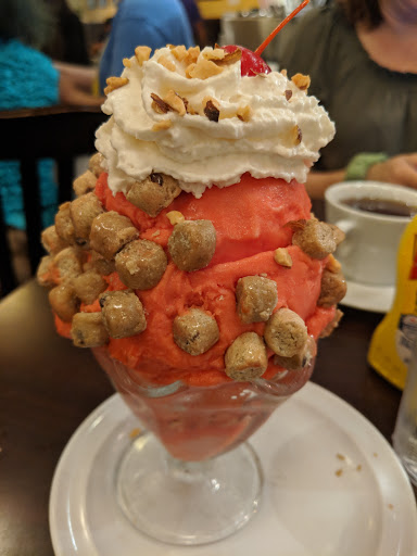 Who honestly gives a bad review for an ice cream parlor. We came here a few years ago for the Man vs Food challenge...We failed at three scoops in. We were back but this time tackled the eight scoop creamy rich kitchen sink as a team. We did not finish again. The ice cream here is good! The $50 kitchen sink is not a typical order. Next time itll be a sundae and a burger. The place also offer diner type foods. The fries was okay. It could use a bit more salt, especially when you want to cut the richness of the ice cream. This place was great the last time I came, it was great this past visit.