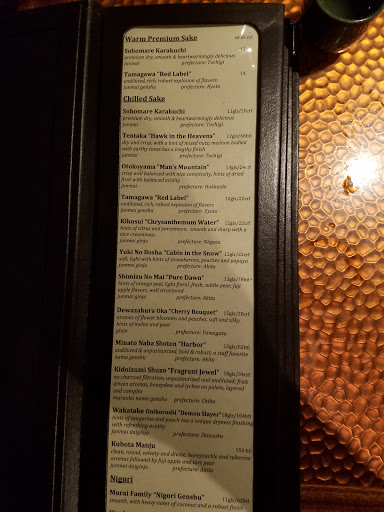 Interesting cocktail list, astonishingly high prices...while the presentation of the food was incredible, the food itself was unimpressive. California rolls made with real crab were delicious, while the age-tofu was the worst Ive had. Service was friendly and attentive, but fell off at the end.