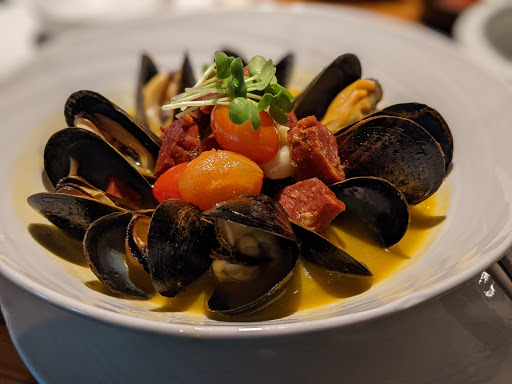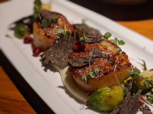 The places decor is nice and the food is pretty good. Its all tapas style plates so it can add up quickly price-wise is the only real con. We got the sesame sweet potatoes, the squash dumplings, spicy broccoli, and the pistachio sea bass. The vegetables were all delicious, and the sea bass was pretty good (not sure where the pistachios were). Bar looked nice to so might be a great place in the future for drinks and an appetizer before dinner.