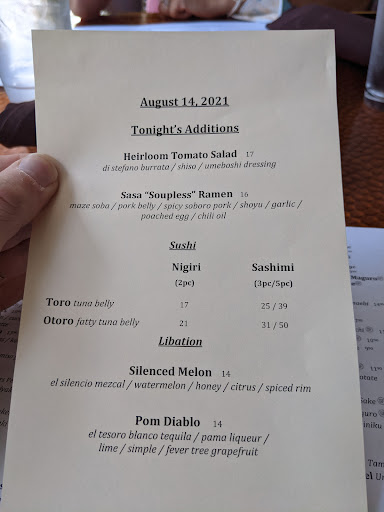Sasa was a delightful spot for me and my wife. They have many small dishes, great for sharing. Nice outdoor patio. Warm atmosphere and tasty drinks.