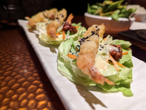Absolutely loved this place. They have "small plates" for Asian food and some food that is pure comfort with an Asian twist. Loved what they do when you tell them it is your birthday. No dessert with candle, something subtle and classy as you first sit down. The Sasa spicy prawn tempura, crab, and avocado rolls were delish! Melted in your mouth. Friendly service. A little pricy but worth it.