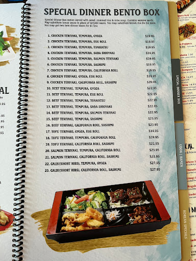 The food took forever to come, even though there was not that many people in the restaurant. The salad had a weird dressing on it. I think it had cinnamon in it, definite not the traditional dressings your get at a Japanese restaurant. The batter on the tempura was not cook all the way through. The chicken in the bento box was over down too. In the upside, the staff was was nice and the atmosphere was nice.
