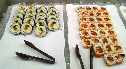 First time here and last, my sushi had a plastic wrap almost ate it it was a huge piece. Food quality horribly made. Selection was poor service poor. I was so mad $40 for food that tasted re heated no great selections. Owners should be ashamed!!!!