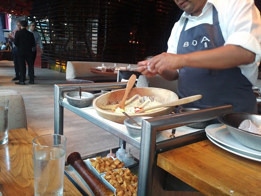We went to Boa for our 6 year anniversary and were not disappointed. We sat out on the patio near the fireplace. It was breath taking. Our service was beyond excellent and the food so delicious. I had the Clean drink to start and it lives up to its name. The subtle taste of cucumber and mint made this drink very refreshing. Next was our appetizer of Blue Crab Cocktail. The crab was plentiful and ever so sweet just as crab should taste like. The Cajon type sauce that came with the cocktail complimented the crab very well. For our meal I had the Ahi Tuna, rare, with a black pepper rub and a lemon sauce on the side. It melted in my mouth. My Husband had the Kolb and I think I caught him licking his plate at one point. We also got the garlic mash potatoes and I think I caught myself licking the plate of those lol. We never made it to dessert because we ate too much. The whole experience was perfect.