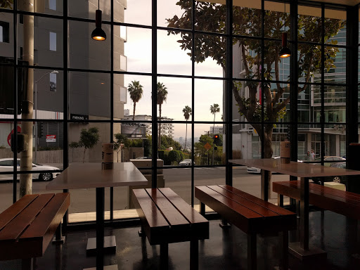 Overpriced tourist trap. I stopped in here while driving along the Sunset Strip for a quick snack, and just got some fries, because the burgers looked extremely small and overpriced. Everything here is just EXTRA. The whole "organic, plant-based" burgers that are small and pricey, the decor, the bathroom naming scheme, its all so EXTRA and annoying. I have to say, the workers here are pretty cute, though. Is it a hiring requirement? Either way, I dont mind! As for the food and prices though, Ill skip. Theres better options.