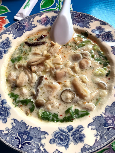 Ive been to this place twice during their lunch hour with my office. Its usually not very busy during lunch - its only open for that meal Tues, Wed and Thurs - so being seated usually isnt an issue. Their food is great and usually comes out fast. The Thai Boxing chicken tastes awesome and is a decent sized meal for a good price and the sticky rice is amazing. They are pretty accommodating if you want a side or sauce separate from your food. The decor is fun and cute, pink beads hang from the doorway and old Thai records hang on the walls. Sometimes it can be a bit slow when youre trying to pay, but thats because Im always with an office of 8 or more and the waitress is usually on her own if we try and split. It took ages to get our cards and change back the first time we went so now we try and make sure everyone has cash before we go. Still one of our favorite places to get lunch! Good food and good for groups.