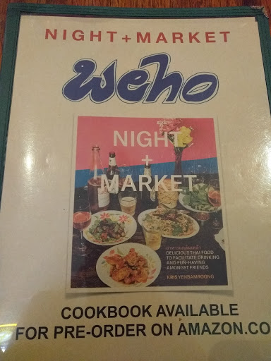 The Night Market in silver lake was a good experience. The WestHollywood location had bad service and the food was inconstant. We called ahead, placed our name as we live up the street. Showed up at their requested time, and was told to wait outside for 20-30. After 55 minutes we were seated. We waited another 23 minutes for water and menus. We ordered quickly. Waited over an hour before the first dish came. Not a great experience. If youre gonna eat here, eat at the Silver Lake location.