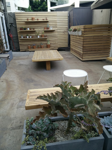 Friendly people, good coffee and great pastries. Sit inside or on their private patio. Sleek design, with some neat stationary to buy, too.