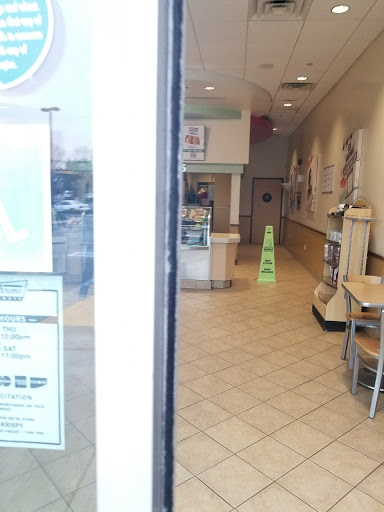 The product itself is good. Mass produced batch doughnuts. Ma and Pa shops (the good ones) still hold a special place in my heart. This will be my last visit to this krispy kreme. The two employees there were so miserable, lacked basic communication skills, and must have had their smiles fried off making doughnuts I really just wanted to leave. In fact, I had one as quickly and possible and ditched my buddy there and regret not doing it as soon as the melancholic transaction at the register was complete.