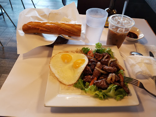 Good bánh mì and Vietnamese coffee. Typical Vietnamese breakfast or brunch, clean and fast service inside seating. Dont be intimidated by people seating outside smoking, inside is clean and airy. Try bánh mì with beef stew, you might like it.