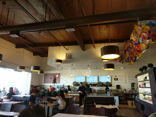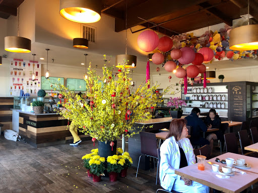 This place has the best french roll vietnamese sandwiches I have ever had. Comfortably dim lighting. the space feels open. They have frozen yogurt with a wide variety of topping. flavored crossaunts too. awesome.