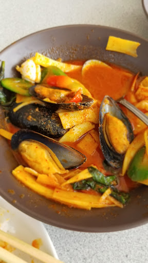 A tiny and simple place with wonderful food. The wonton and spicy seafood soups were quite tasty.