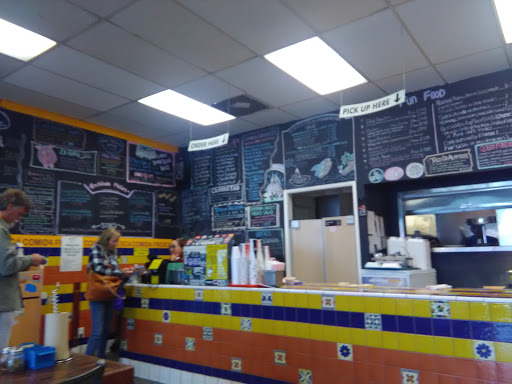 GREAT MEXICAN, HAND CHALKED MENU ON WALL GIVES IT A CASUAL AND ARTFUL APPEARANCE , IM HERE AT THIS TIME WAITING FOR MY TAKE OUT - THE WAIT IS WORTH IT. YOU ORDER AND PICK UP AT THE COUNTER , NO WAITRESS AT UR TABLE TO TAKE ORDER. IT IS VERY BUSY AND THE HELP IS TRYING HARD TO KEEP UP, LOOKING AROUND MOST OF US R WAITING. CANT RUSH QUALITY. HAPPY CINCO DE MAYO