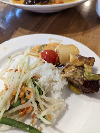 Finally, a place that serves awesome Thai iced tea! I had the crunchy spring rolls which were delicious especially with the sauce. I also had the Tiger Steak which was okay. Nothing amazing but the sauce it came with made it taste way better. I will definitely be coming again because they have a really good menu. Service was great too. Waiters were polite and frequently asked if we wanted something. They packed our leftovers really nicely as well. Those are the small details which made for a good experience.