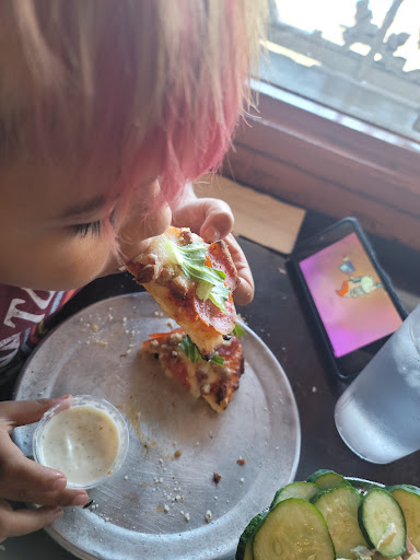 Wasnt too happy with the salad handling need to be educated on cross contamination or at least rinse the eutencils used to grab the various salad items not the first te I see but my first time sharing about it.. the pizza is great