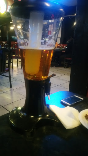 Love that place, friendly waiters, love the Sweet BBQ and Nuclear Hot Wings.. That big bottle of beer is cool to go with friends or family.... TVs in every table, i really had a great time with my man. Pizza looks good too. This was my first time and plan to go again..