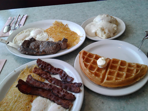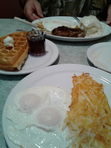 I havent not liked anything Ive ordered here. The waffles are delicious and fluffy, well topped, and of good variety. The regular breakfast fare is all cooked well. Their chicken fried steak is absolutely delicious, the gravy is thick and full flavored, it doesnt taste like flour like more poorly executed versions. I like their country potatoes but like with all home fries you need to order them when the batch has been on the griddle for a while (which is a luck of the draw sort of thing) or else they arent the best ever. The ham steak is impressive as well, and wasnt over cooked / dry like Ive had at other establishments. What I dont like is the canned corned beef and hash, its disgusting. Any place that puts that much love into the rest of their food could easily do their hash from scratch, but I guess its one of those things you either love or hate.
