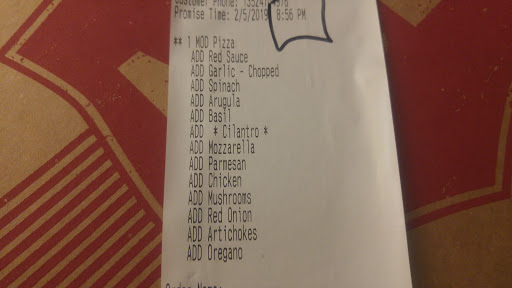 I like the concept of Mod Pizza, it is like a cross between Subway sandwiches and a pizzeria. I ordered my pizza and received in about 5 or 10 minutes. I ordered a Mini Mod Pepperoni pizza and it was delicious.