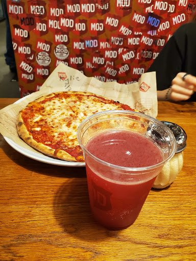 I was pleasantly surprised by this place, fresh ingredients , friendly people and a great atmosphere make this place stand out. Being able to create pizza on the fly and to your specifications is awesome (if any of you have had PizzaRev you know what Im talking about), i got a semi Hawaiian- Canadian bacon with pineapple and cilantro, with tomato and Bell pepper- and it turned out alot better then i thought! The real prize winner, here though, is the garlic bread sticks (which i think they call Mod Sticks), which blew me away with their taste- Im not joking on this, they were deceptively delicious on a whole other level! Would like to see more options available as time goes on (maybe stuffed crust pizza? Chicken wings? {Or even pieces?} ), But i definitely loved this place- and anyone who likes pizza will love it too. Shout out to the people who work here too- very friendly people who make you feel at home (Mod-home?)