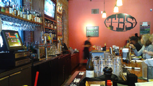 Huge old exposed brick building, very busy for lunch, but very fast with service and food. Victor the bar tender was extremely knowledgeable and helpful, even being extremely busy. The burger was amazing!! $20.48 For a double swiss pig, with bacon, Portabella mushrooms, tons of Swiss cheese, and crispy onion straws with a roasted garlic aoli!! fries and a soda. I think it was worth every penny!!! Nice job TBS!!!