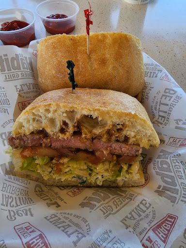 Pretty good place for the everyday burger craving. The Santa Barbara style char is pretty good but will add almost 1000 calories by itself (for those calorie counters). Other options besides the typical burgers are grilled sandwiches and salads. This location gets a lot of traffic during lunch hours.