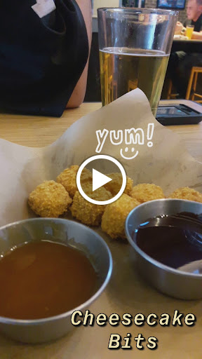 Service was awesome, our drinks were refilled promptly and our waitress checked on us often. We put in our appetizer order (wings and a sampler) and about 5 minutes later we put in our dinner order (husband ordered a build your own burger and I had the tenders and popcorn shrimp) oddly our dinner came out first but we didnt mind. The shrimp was amazing tenders I only took one bite, Im a little weird when it comes to chicken and I thought it had a funky flavor. Husband loved the burger and fries were good. We got our appetizer and unfortunately the sampler was not the one we ordered, I dont like to send things back so we tried to enjoy it. The nachos it came with were not appetizing the wings were good (teriyaki) onion rings were so so, and mozzarella sticks were good, I think the sampler we originally ordered (spinach dip) would have satisfied us more. We tried a bit of everything and had tons of left overs. A friend recommended the cheesecake bites so we ended up sharing an order and surprisingly finished it all! Even with full bellies they were delightful. I didnt think I would enjoy a warm cheesecake but it is a must have. I would have given 5 stars if only my appetizer was correct.