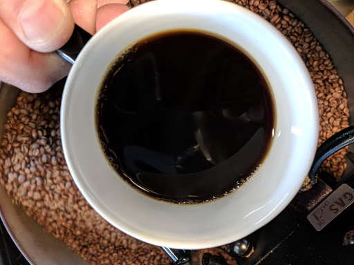 Sitting here on a Monday enjoying the aroma of an in-house roaster as the owner prepares the house blend for the week. It is a rich and smoky aroma. He stands over the roaster adjusting and checking as he goes. Very clearly a labor of love and one that ends in a fantastic cup of coffee.