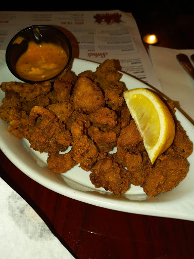 Huge Steaks, tender calamari, great salad dressings. Worth the wait. Popular with locals. Veggies that come on the side are usually a waste, hard and not seasoned. But stay for the delicious berry pie!