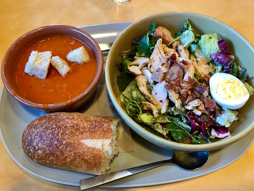 I live 2 miles away from this Panara, so i have been here a few times. Every time I have came here they mess my order up. Thy do not listen to what you want. I am highly allergic to cheese and asked for without it and they ended up giving me a grilled cheese instead of a salad. If I want Panara, I drive to the one farther away. This place is not worth having to wait in the drive thru for 15 minutes to end up with the wrong order.