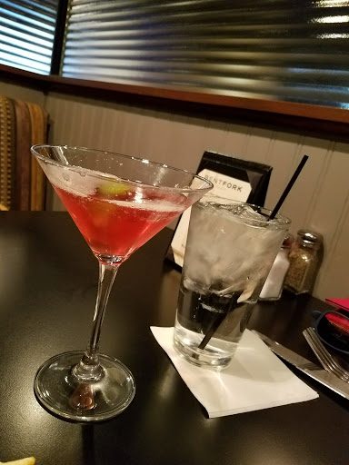Our server, Tasha, was very friendly and knowledgeable about the items on the menu. We were a little disappointed with the seating situation where we were forced to move due to other customers coming in. Our entrees (New Mexico Ribeye and Salmon BLT) was excellent. The sweet potato fries that came on the side were pretty middle of the road though. We also had the cream of mushroom soup and the caprese, which were delicious. The wine menu was very good, although the food menu was quite large, very Cheesecake Factory like. There is a large list of Martini variants which looked interesting as well. I was very impressed with most of the food at this strip-mall suprise, and would definitely come back again to try some of the other things that caught my eye, like the French Dip or the Pasta selection.