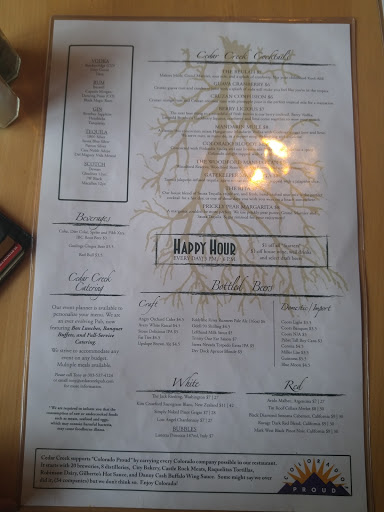I love eating at Cedar Creek pub. They are always rotating new beers on their solid tap selection. Burgers are great, they just do them right. They also make their own fries and yummy sweet potato fries. Price is good for the quality of food, and beer isnt overpriced. Typical pub atmosphere, but dont be scared away if it isnt busy, its just slow when a lot of people arent on (Anshutz) campus.