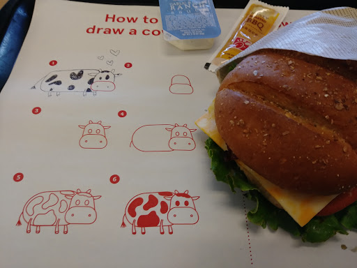 The food was fine but it was SO busy and there was trash all over the place. A lot of kids there (play place in back). The were some strange flow issues such as if you need a knife or drink refills you have to go to the front to ask an employee.