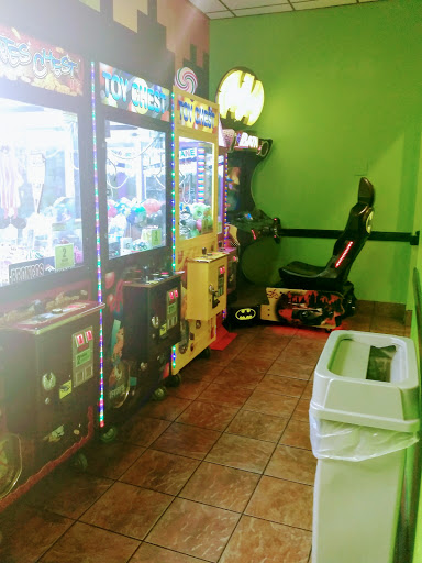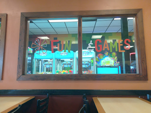 Pizza: meh. Quantity, not quality Atmosphere: ugh Chance of returning: 0% There were screaming kids everywhere. The ladies restroom was a mess. There was something spilled on the floor in the hallway going to the restrooms. There were two LITTLE kids unattended in the game room, climbing all over the Batman game, and the little boy wouldnt move to let my grandson play. He was maybe a year old. Then he wanted me to give him money. I had told one girl who seemed to be in charge about the kids. She went back there walked through, and did nothing. Nothing. So, one star for the pizza being edible.