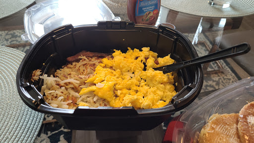 Used to go in there quite often in the early morning hours but the staff and the management at that time of the day is kind of useless. They dont even know when youre standing at the counter waiting to place an order because theyre too busy in the back shooting the bull! And events or Saturday morning or Sunday there is nothing but a bunch of loud drunks in there. The carry out plastic that you use is ridiculous. In this day and age when recycling is a big thing you are stopping peoples bags with tons of black ugly plastic for the food. If you order eggs bacon and potatoes they have to put each one in a separate plastic container which is so stupid. Besides that black plastic is really not considered recyclable because it such bad material. Come on IHOP lets get with the program and at least use the recyclable products. That one is big on my list