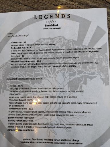 My wife brought me here after going to Legends one day and loving it. This is a great coffee shop with incredibly friendly owners and staff. They have lounge, table, and bar seating, so its a great spot for working or just relaxing. Between the two of us weve tried quite a bit of the menu (including food/pastries) and all of it has been stellar. Theyve got the best drip coffee and cold brew Ive had from any shop, and my wife always gets their vanilla latte. In short, they do everything right. This is the kind of coffee shop you want to keep around for a long time.