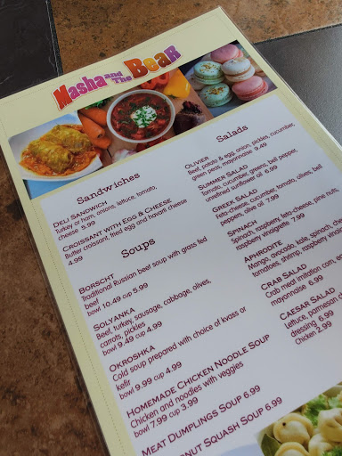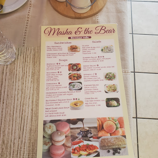 I feel like I stumbled on buried treasure when I found this place. Authentic Russian food - borscht, pelmeni, vareniki, olivie - there are quite a few items on their menu with a lot of variety. When you place your order, she goes in the back and is gone for a while. Shes probably growing beets back there or milking smetana out of a cow. Its legitimately homemade from scratch and you can taste it. The portions are decent-sized as well. Theyve got desserts, ice cream, tea, coffee, etc. Its a cozy clean little cafe with a fun theme. I look forward to bringing my son here. He loves Masha and the Bear. As for me, I will be coming back just for the food. приятного аппетита!
