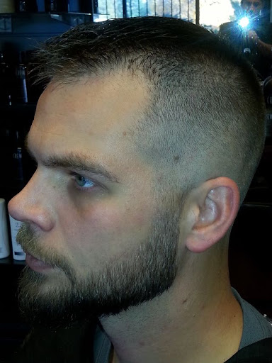 Great barber shop. Guy took his time and made sure he did a good job. Clean. Friendly. Even cleaned up the lines on my beard well. Im picky and Id recommend this shop to anyone. Theres probably a dozen barber shops closer to me, but Ill make the drive again anytime. Big+ for being a Veteran, having a pool table, big screen with sports, complimentary beer on tap, and a humidor!