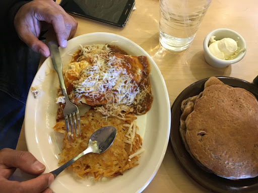 The was the worst Restaurant experience ever it was around midnight me and my wife order coffee and the coffee taste like just water then the syrup for the pancakes was the worst thing I ever had it was a mix of water oil and some other stuff I told the server About and she just made a face like we were wrong never apologize or say sorry for the bad food this people should be a shame to work on the Restaurant industry i am a chef myself so I k