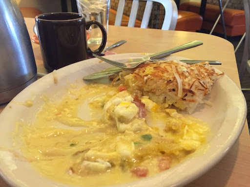 The Coprophages Delight! And a great diner for those whove damaged their sense of smell snorting broken glass, or cleaning their sinuses with sulfuric acid and steal wool (how did that ever get popular?). My most recent gastrointestinal misadventure involved ordering the aptly named Garden Veggie Omelet, which had an exciting and mysterious red fluid covering it which was the closest thing to a vegetable that I think they currently serve - a liquid vegetable in our technologically savvy 21st century! Too bad I didnt bring my flying car! :) Another thing that struck a personal note was the eggs themselves; they reminded me of the powdered eggs my grandfather described from his service in the U.S. Navy in the Pacific Theater during the second World War. Veritably, I recreated a part of personal and national history at this quiet aromatic corner of Aurora! Or on second thought, it may have just been powdered Cheetos, pressed shipping peanuts, with splash of tears and a dash of broken, desperate love. Well regardless of what it was, or how long I have left to live, I can tell you I was sure I was in America while I was obediently forking it into my patriotic pie-hole. As an appropriate show of gratitude, I look forward to returning for my next experience naked, completely covered in peanut butter, and dusted to the gills on PCP! You gotta bring your A-game to a place like this. Things are only getting better for me - I can just feel it.