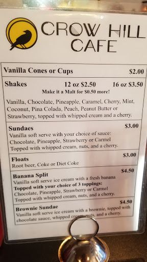 Fantastic spot for breakfast or lunch! They bake their own bread, pies, cookies, and brownies. And they make soft serve with 4 ingredients, not some carton of goop. Staff/owners are wonderful people, and service is always great. Delicious food, cannot say enough good things about Crow Hill Cafe!